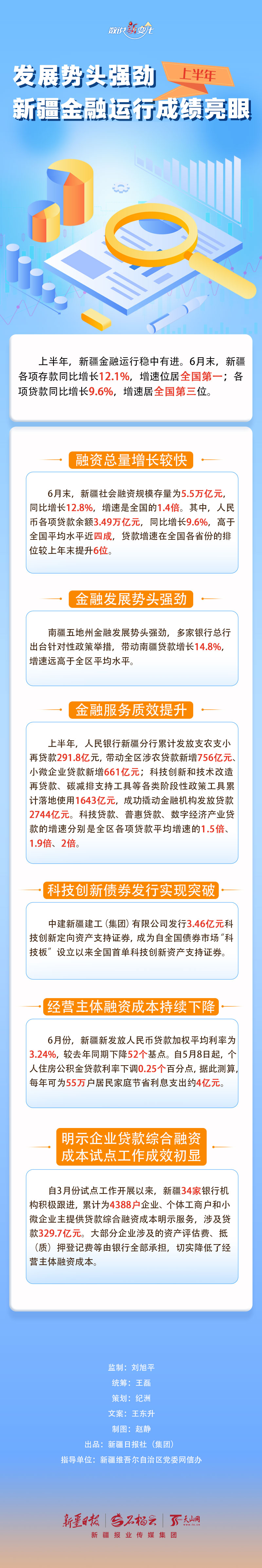 6月末,新疆各项存款同比增长12.1%,增速位居全国第一;各项贷款同比增长9.6%,增速居全国第三位。上半年最新配资平台导航,新疆金融运行成绩是如何取得的?有哪些亮点?今天的《数说“新”变化》一起来看看。