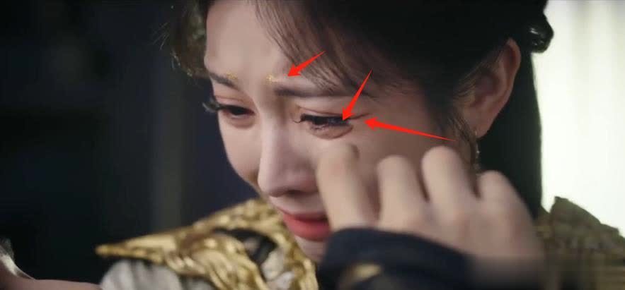 这眼角哭起来的褶子,能戳死人的超大假睫毛,还有眉头的金粉,真的给这张脸加了太多的东西了!