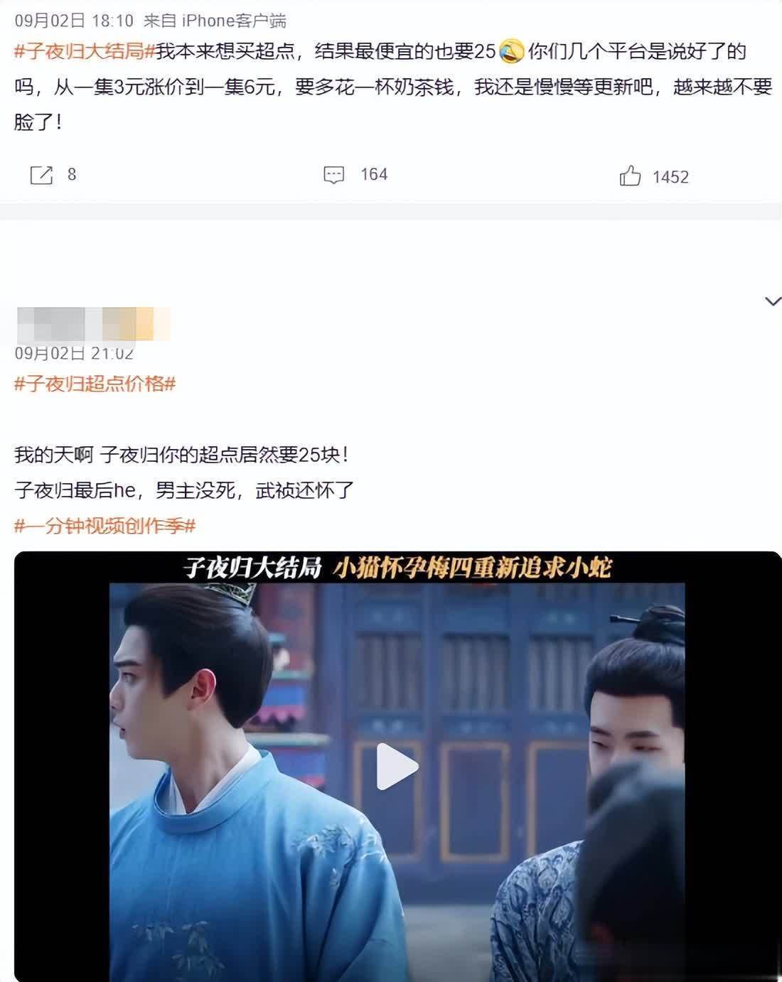 而这一次《子夜归》的超前点播,也是贵得出奇。